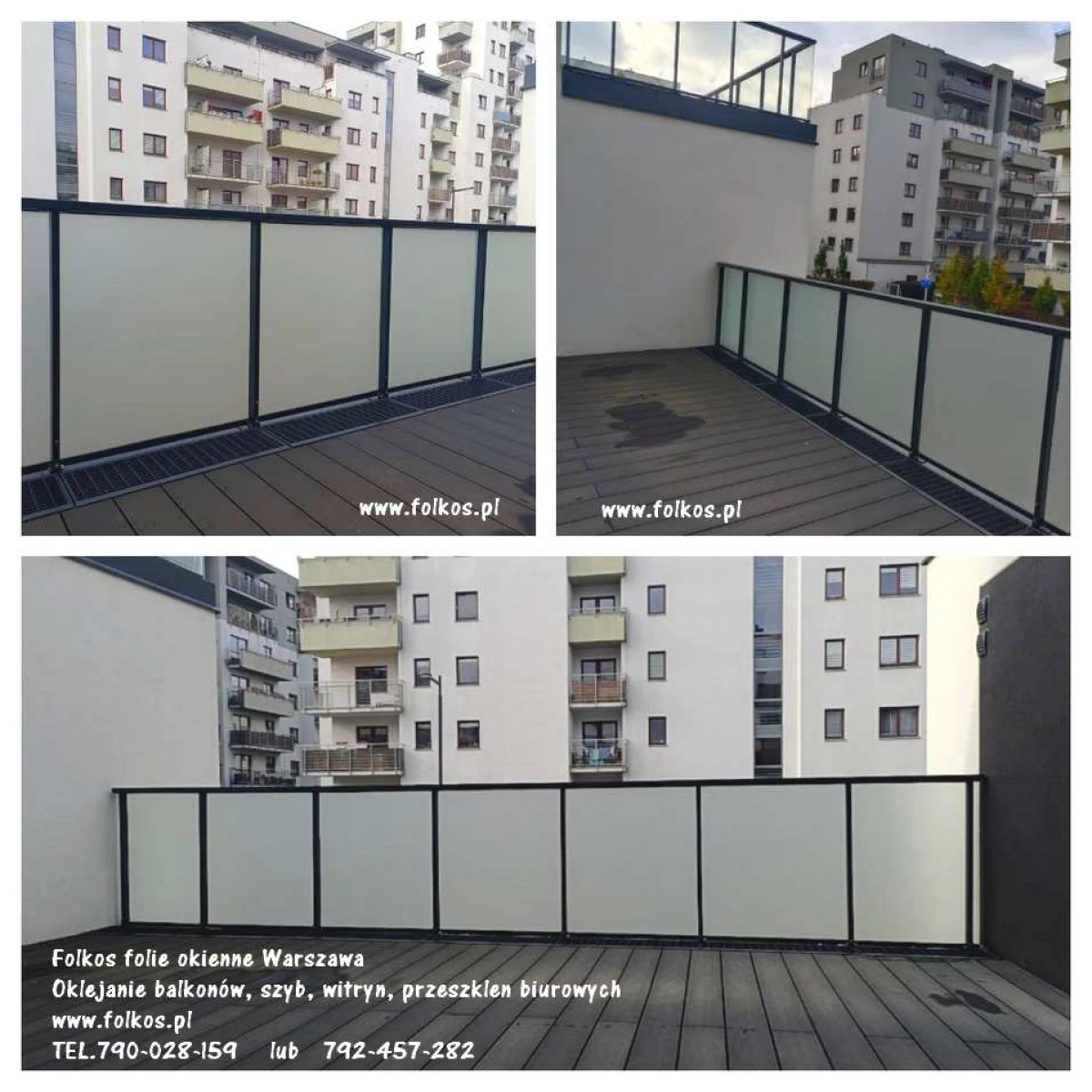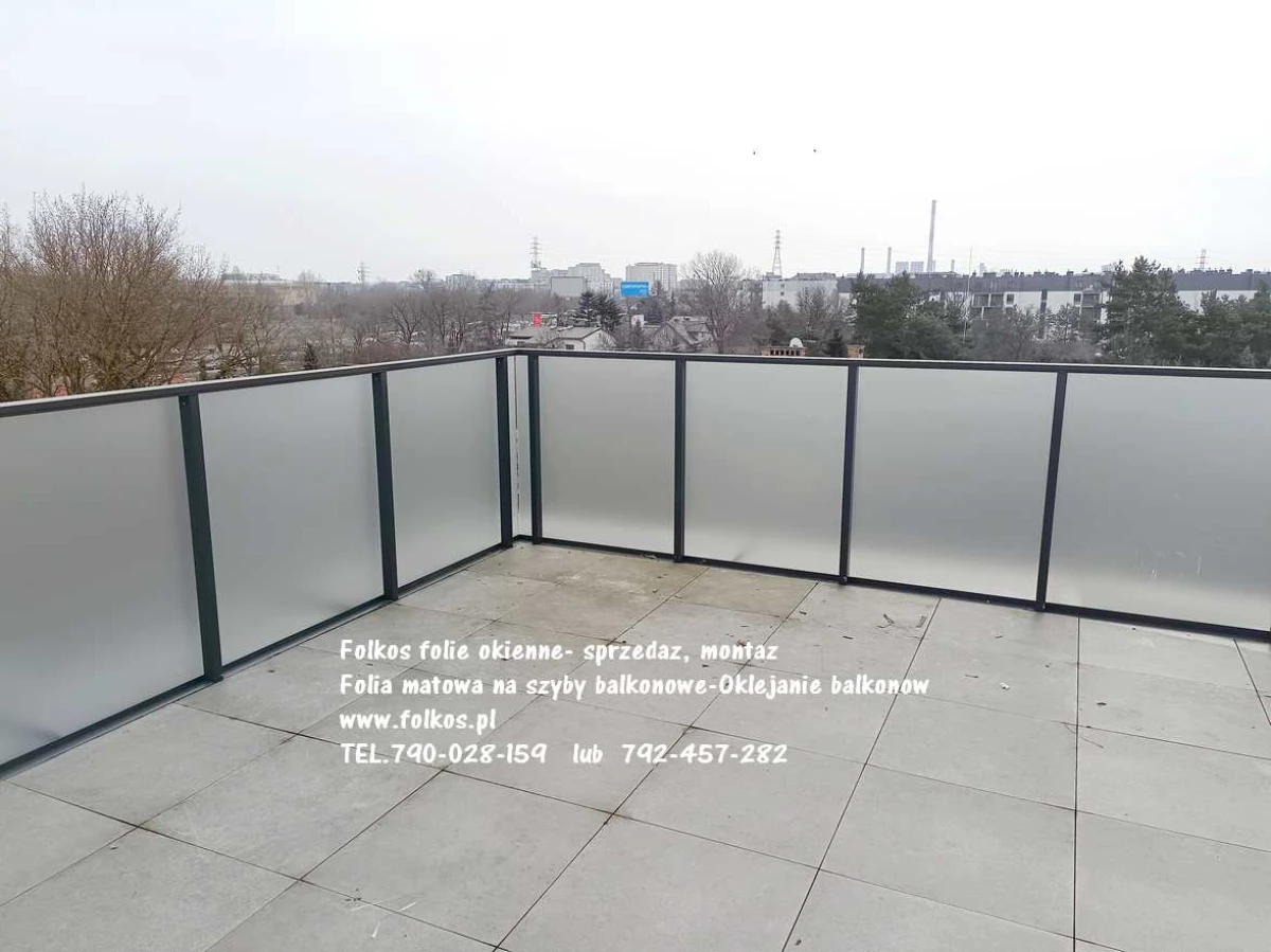 Folia matowa na szklane balustrady balkonowe -Oklejamy balkony Warszawa -Folkos folie okienne